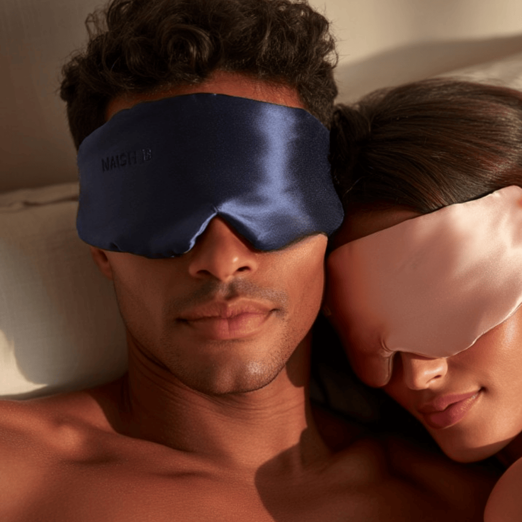 Our bestselling His & Hers mulberry silk sleep mask duo pairs Midnight Blue for him and Blush Pink for her. Crafted from the finest mulberry silk — the Rolls-Royce of silks — each mask helps reduce friction, protect skin, regulate temperature, and support deeper, more restorative rest.